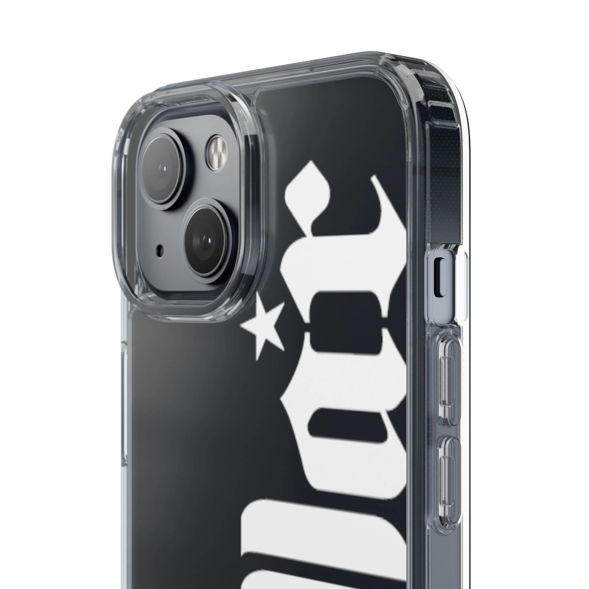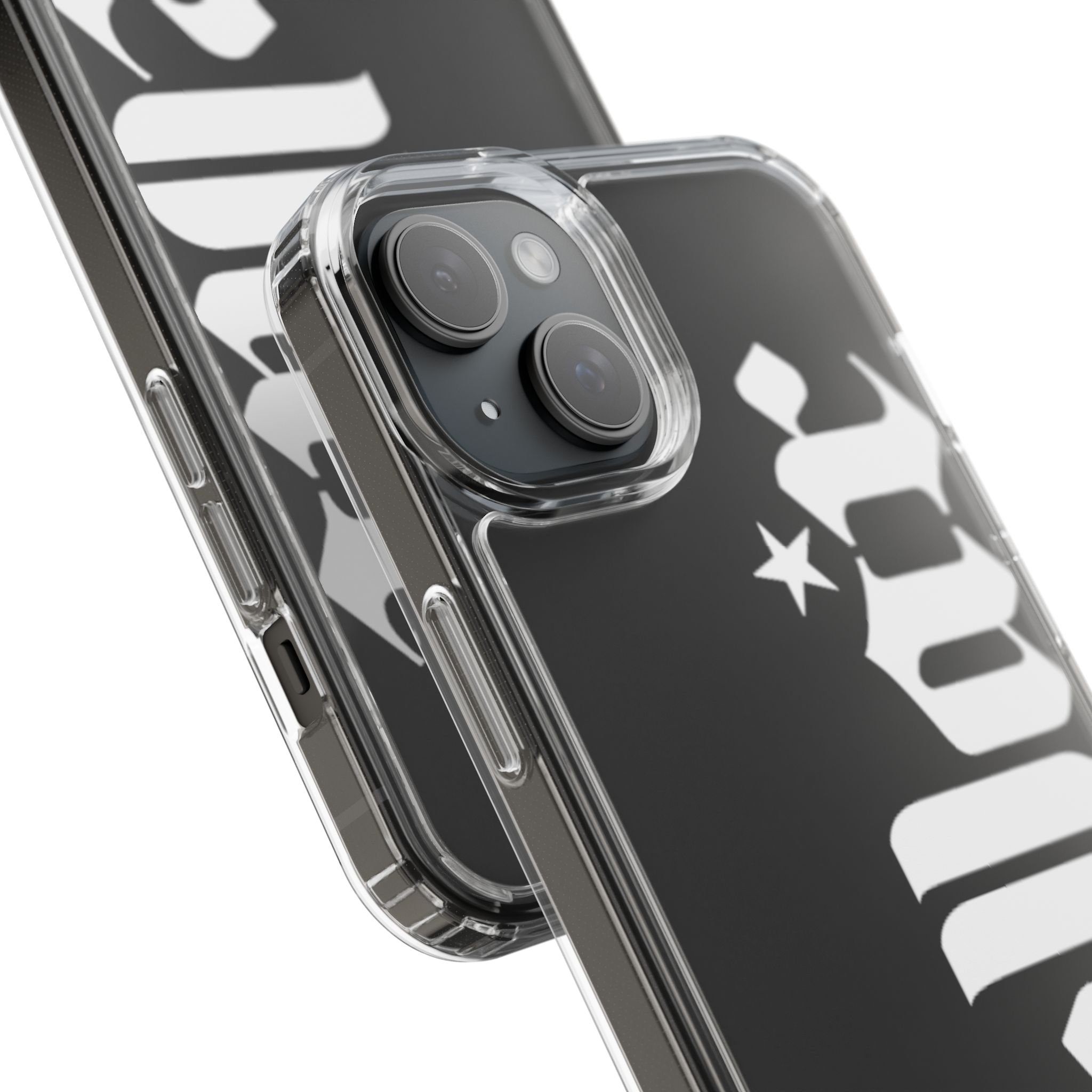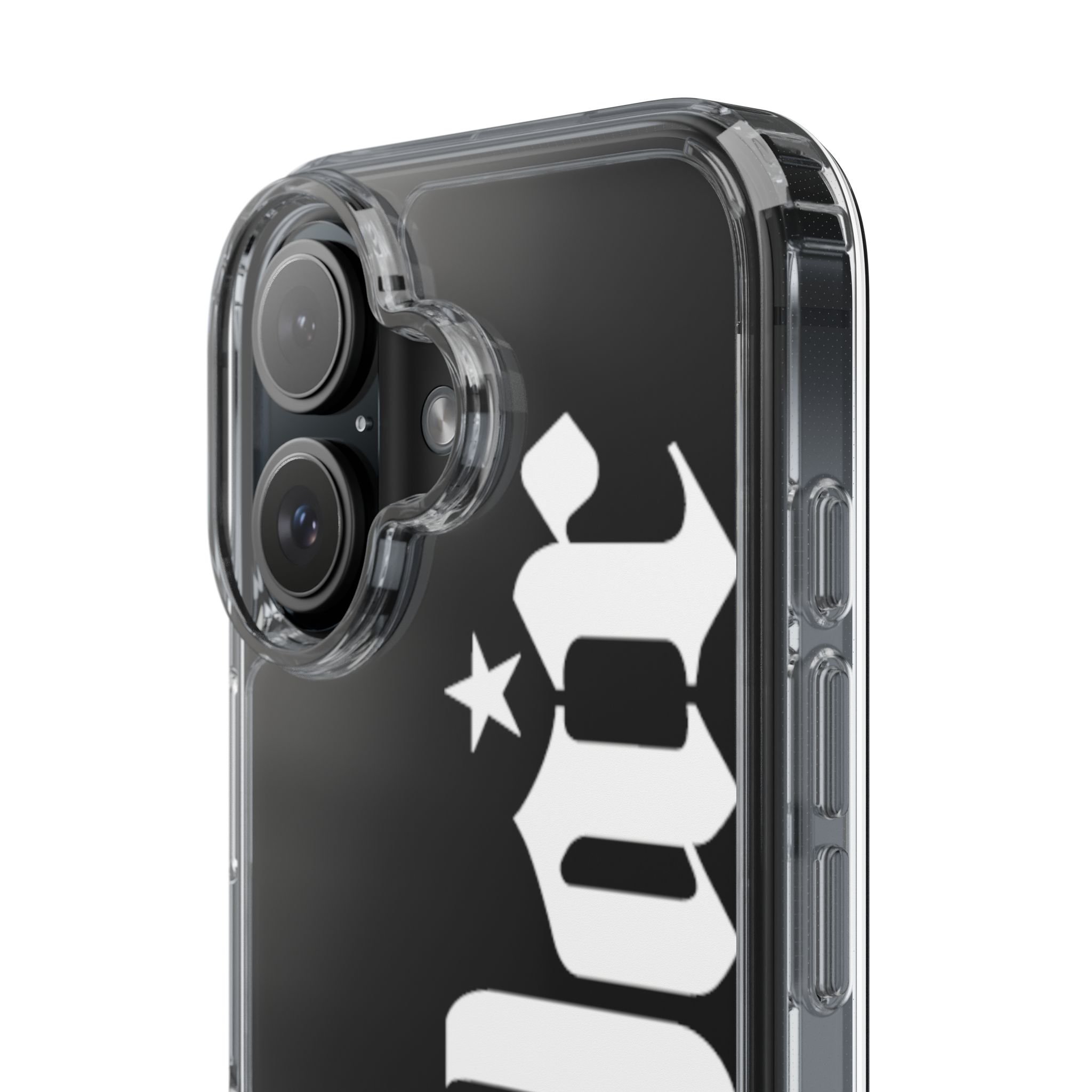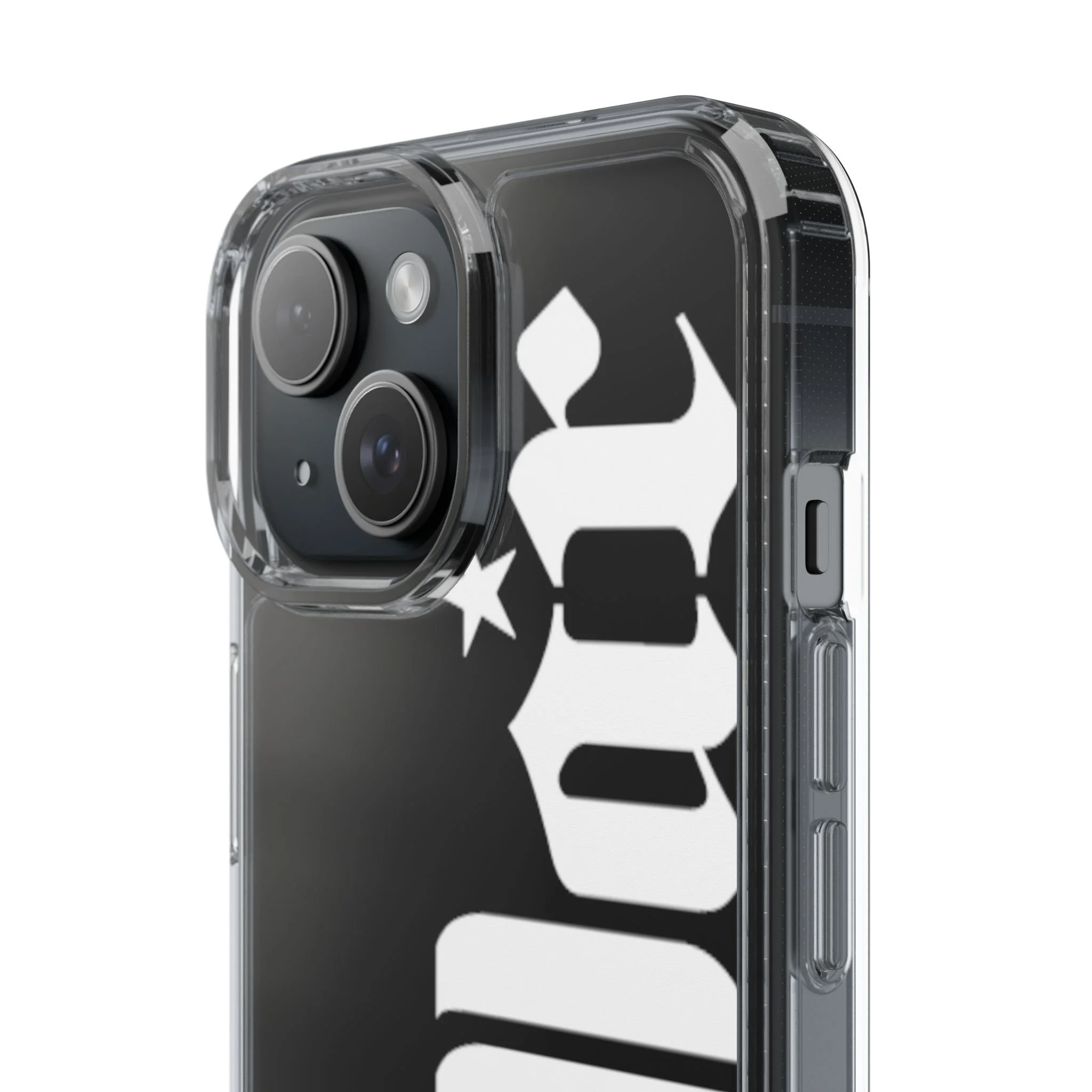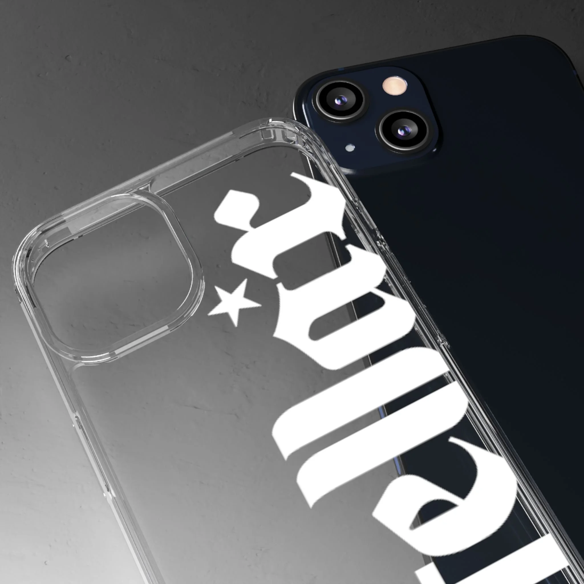 A clear, slim phone case that blends minimalist protection with bold, streetwise style. The transparent polycarbonate back and TPU sides keep the phone’s silhouette visible while the shock-absorbing construction guards against everyday drops and bumps. Crisp, high-contrast printing preserves the graphic’s sharp edges and deep blacks so the typographic design reads loud without adding bulk. Thin, precise cutouts keep buttons and ports accessible and wireless charging ready. It’s a case that slips into pockets easily, withstands daily wear, and carries an unmistakable attitude for those who prefer clean lines with a graphic edge.