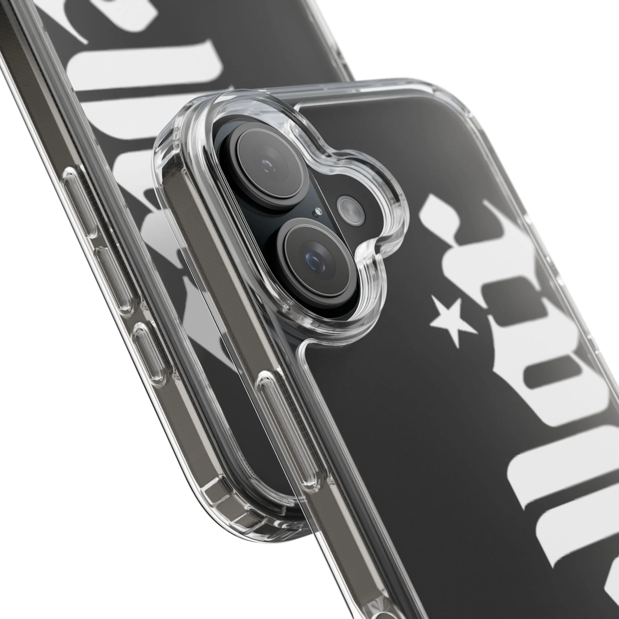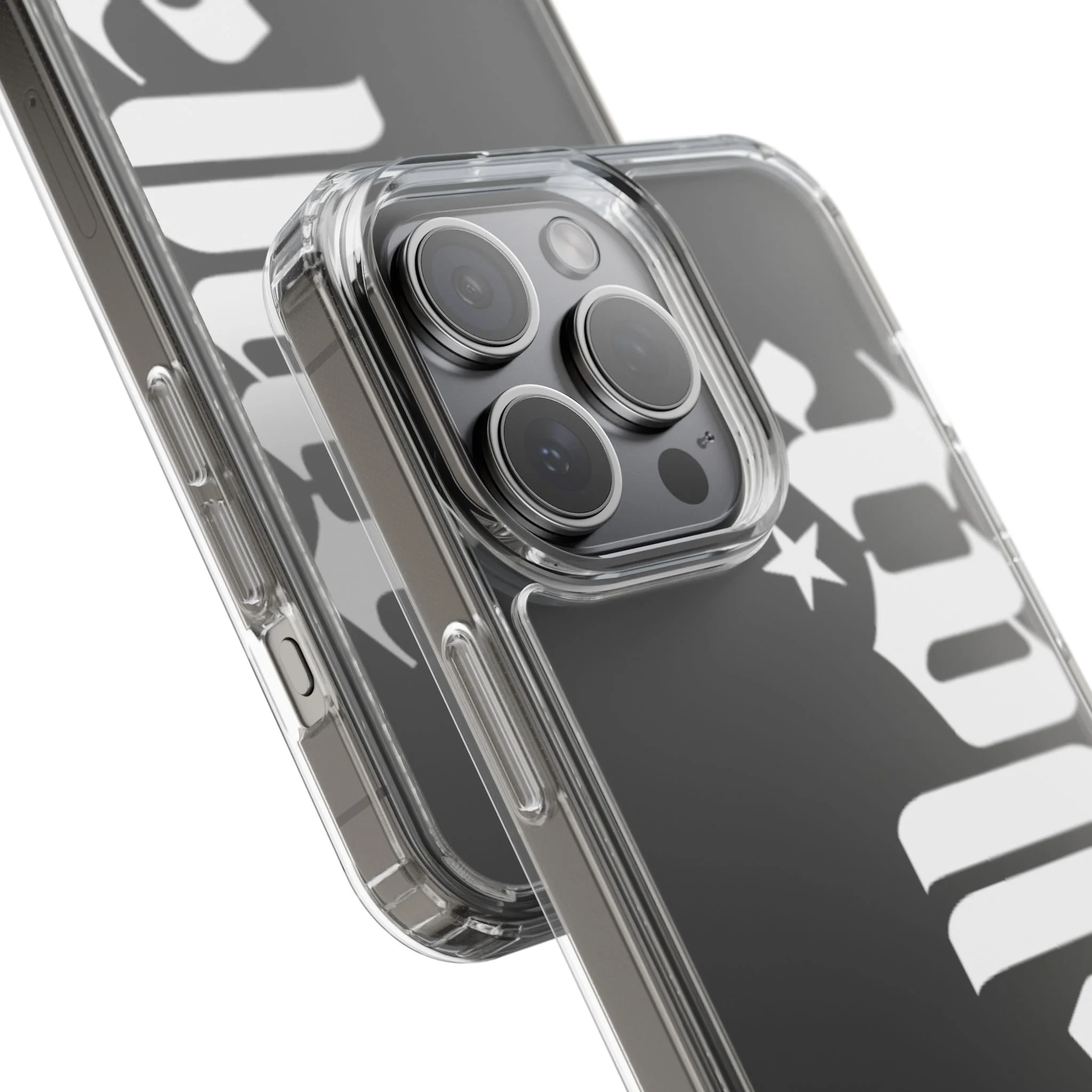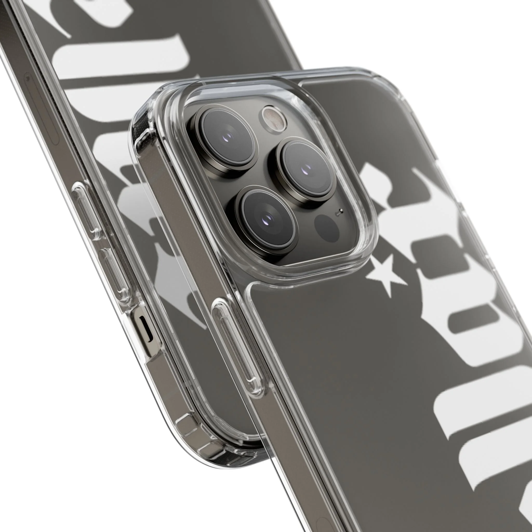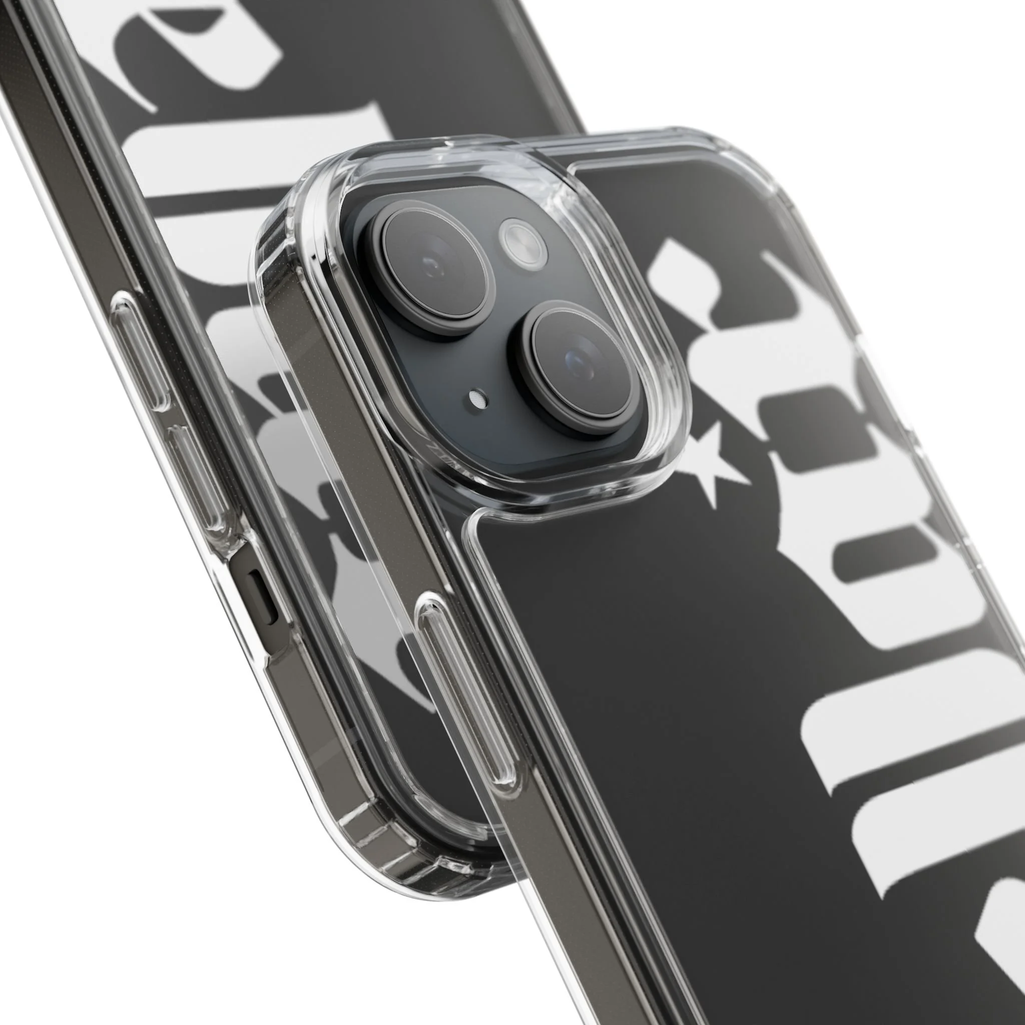 A clear, slim phone case that blends minimalist protection with bold, streetwise style. The transparent polycarbonate back and TPU sides keep the phone’s silhouette visible while the shock-absorbing construction guards against everyday drops and bumps. Crisp, high-contrast printing preserves the graphic’s sharp edges and deep blacks so the typographic design reads loud without adding bulk. Thin, precise cutouts keep buttons and ports accessible and wireless charging ready. It’s a case that slips into pockets easily, withstands daily wear, and carries an unmistakable attitude for those who prefer clean lines with a graphic edge.